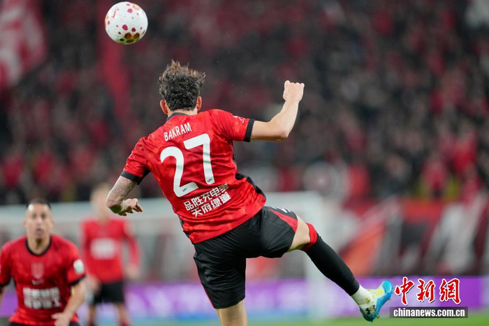 3月15日晚,四川成都,成都蓉城队队员拜合拉木·阿卜杜外力在比赛中。当日,2026赛季中超联赛第2轮比赛中,成都蓉城队主场1比0胜青岛海牛队。中新社记者 安源 摄